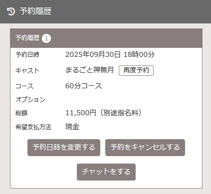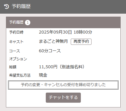 また、締め切り時間を過ぎた際に予約履歴画面にメッセ-ジを表示できます。