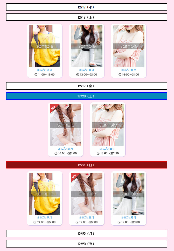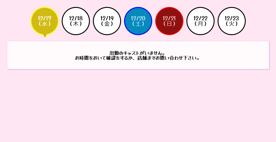 キャストの出勤がない日や連休がある店舗では、当日にサイト訪問者が出勤表ページを確認しても