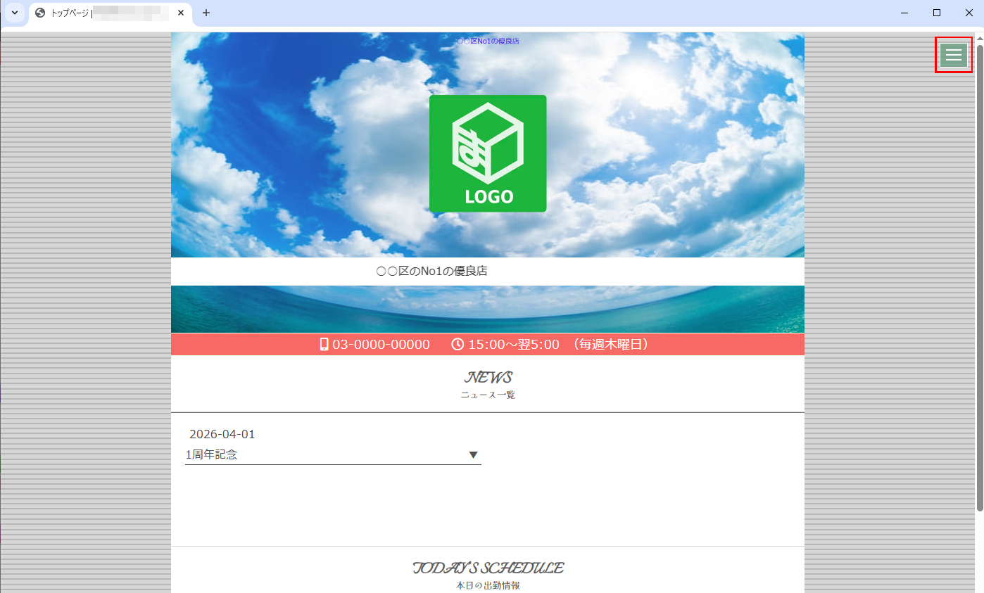 今回、「コンテンツ表示幅の内側」「コンテンツ表示幅の外側」が追加され、より適切な位置にハンバーガーメニューのボタンを設置できるようになりました。